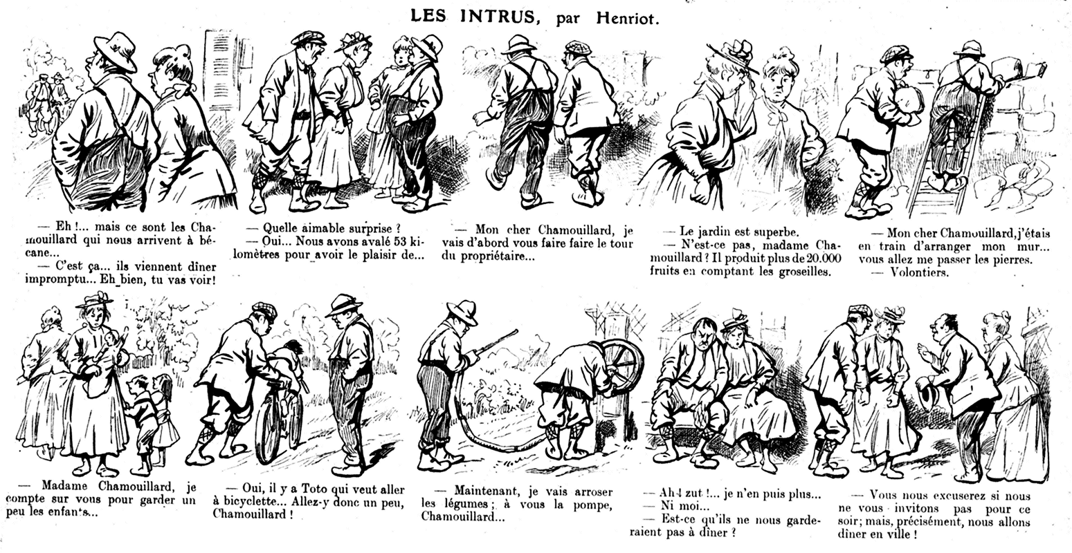 On les rencontre à l'heure de «l'apéritif», assis aux terrasses des boulevards et, le soir, à la Comédie-Française, à l'Opéra, ou, si la chaleur est trop forte, aux cafés-chantants des Champs-Elysées, devant le cinématographe du Jardin de Paris, autour des tziganes dont ils écoutent rêveusement les mélodies ou les cake-walks en buvant des choses glacées au bout de longues pailles... Ils sont un spectacle pour nous, ces étrangers, et souvent un spectacle instructif. On reçoit d'eux des confidences amusantes et très inattendues.