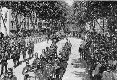En attendant l'arrestation du coupable, on a procédé à l'enterrement des victimes. Ces obsèques ont eu lieu le 5 septembre au matin, à 9 heures, au milieu d'une grande affluence de population. Toutes les autorités y assistaient. La famille royale et le gouvernement s'étaient fait représenter. Tout Barcelone suivait le convoi.