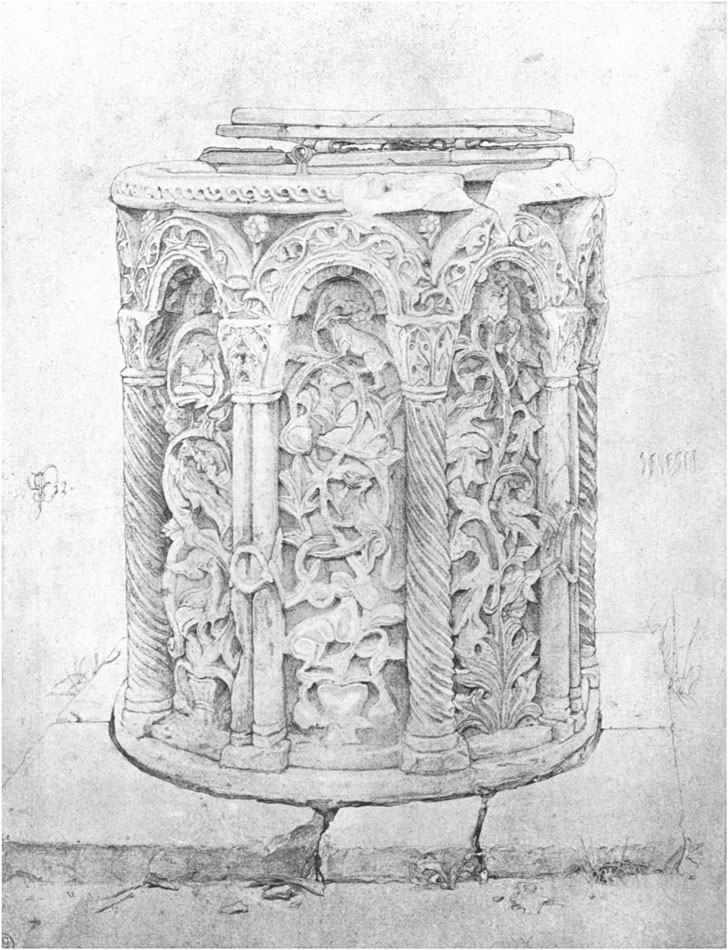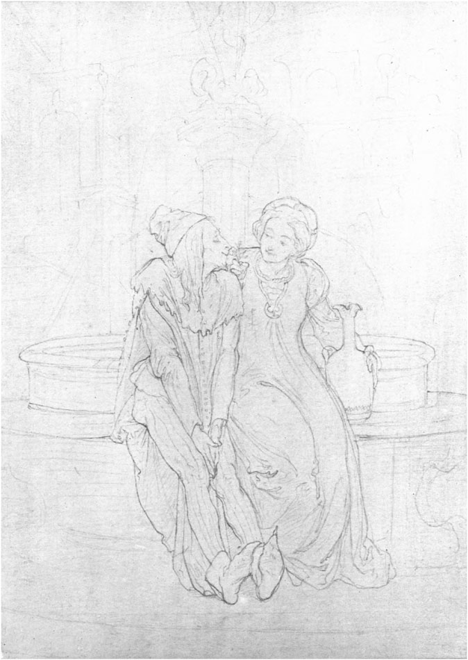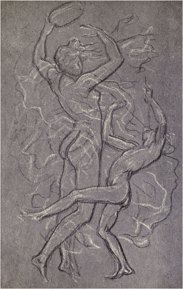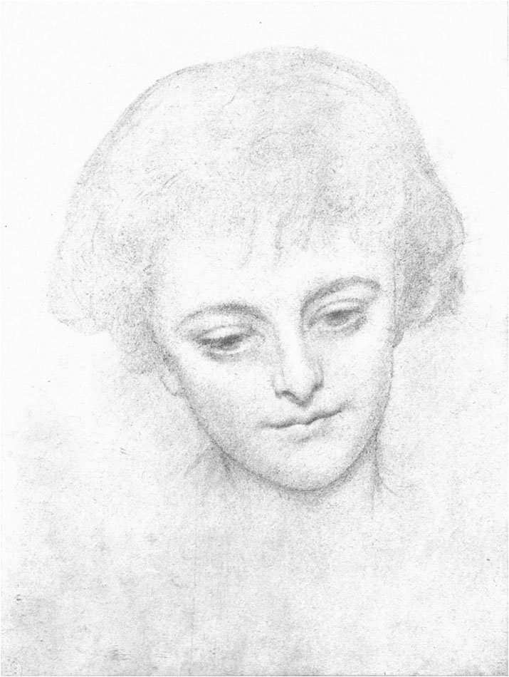 Unfortunately the paper Leighton used was of the kind which becomes injured by time. The brown stains which now disfigure the sheets and the faint tone of the pencilling make it impossible to reproduce these drawings with any worthy result, but some of the original sketches can be seen in the Leighton House Collection.
