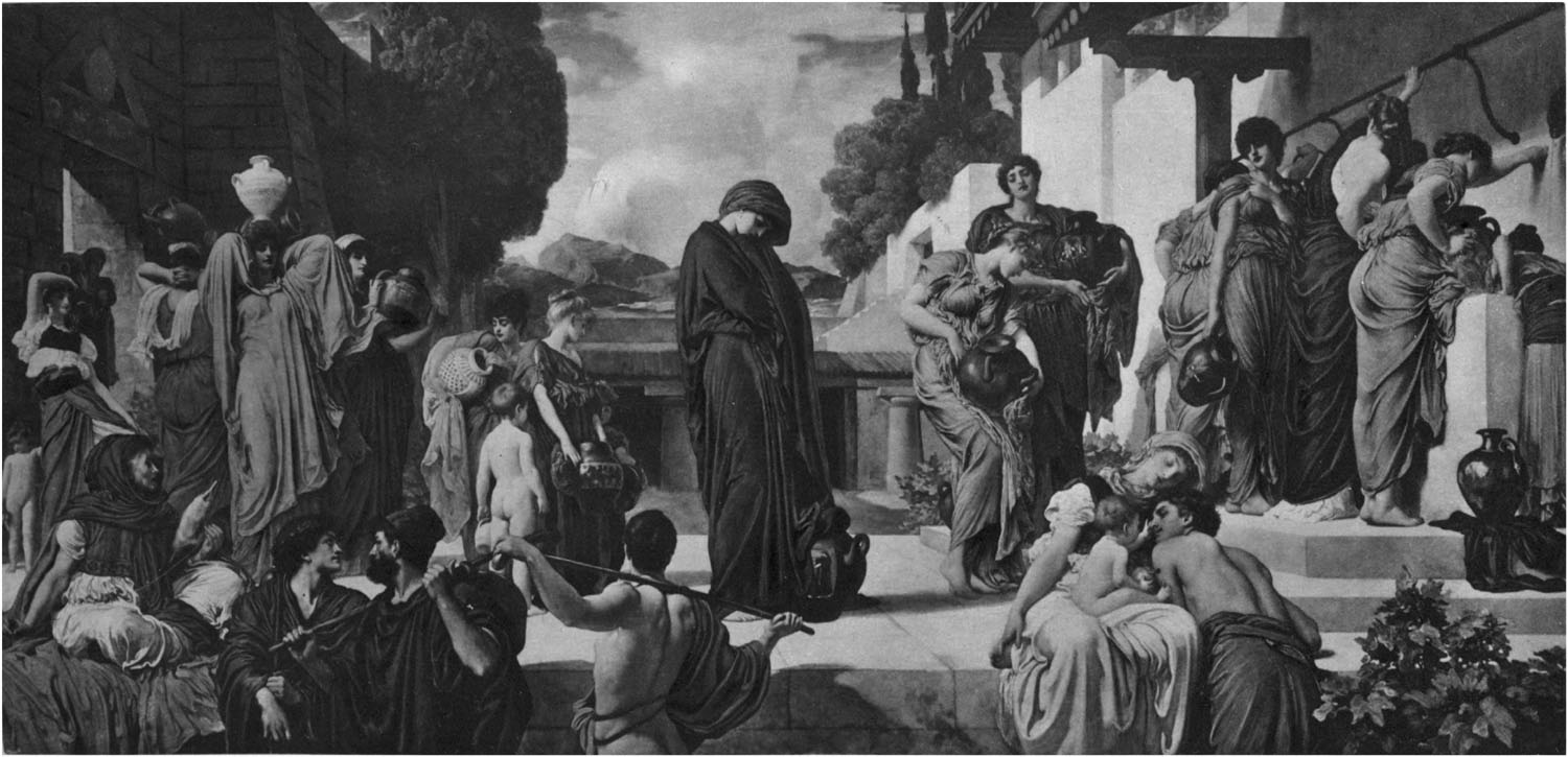 [3]First, there was Leighton, the great man, the public servant, gifted with exceptional powers of intellect and character, who attained the highest social position ever reached by an English artist; the Leighton the world knew, whose sway was paramount in the many councils and assemblies to which he belonged no less than when fulfilling his duties as President of the Royal Academy, and whose helpfulness and zeal in promoting the extension of a knowledge and appreciation of English art in foreign countries and in the colonies became proverbial. Lady Loch tells of his invaluable help in the efforts she and her husband made to encourage art, while the late Lord Loch was Governor of the Isle of Man, of Victoria, and of Cape Colony. "I feel it would be impossible," she writes, "to convey in a few words what a wonderful friend Frederic Leighton was to my husband from the time he first knew him,[2] forty years before Leighton's death, and to myself from the time we married. He was always ready to help us at every turn. Any deserving artist whom we sent to him would be certain to find in him a friend. When we arranged the very small Art Exhibition in the Isle of Man, you could hardly imagine with what energy and thoughtfulness he entered into the matter, impressing upon us all the steps that we ought to take in order to secure its success, even to the details, such as packing and insuring the pictures. He himself sent us pictures for the Exhibition, and guided our judgment in admiring and caring for those which were best and most to be valued, with a paternal care and zeal not describable. Again, when we were in Australia, and the great International Centennial Exhibition in Melbourne took place in 1888, Frederic Leighton selected such a good collection of pictures that they simply were the saving of the Exhibition financially—they attracted such continuous crowds of visitors. Subsequently, when an exhibition [4]of ceramic work was asked for in Melbourne, and Henry Loch wrote to consult his friend, amidst all Frederic Leighton's important work and duties, he rushed about and secured a most interesting collection of all kinds of china and pottery, which was greatly appreciated by the Australians. Again, in 1892, he formed a Fine Art Committee, consisting of himself, who was appointed Chairman, Sir Charles Mills, Sir Donald Currie, M.P., Mr. W.W. Ouless, R.A., Mr. Colin Hunter, A.R.A., Mr. Frank Walton, and Mr. Prange, to select pictures to send for exhibition at Kimberley. Besides a picture lent by Queen Victoria, at Leighton's request, of the portraits of herself and the royal family by Winterhalter, and four by Leighton, which he lent, the Committee secured 181 pictures, though not without great difficulty, Leighton told us, because the artists were afraid their works would be injured by the burning sun, the sandstorms, and the rough journey up from the Cape. Owing, however, to Leighton's untiring exertions, a very interesting and successful exhibition took place in this then little known town of our English colony in Africa."
