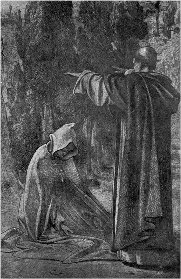 [69] Among the drawings sold by the Fine Art Society in 1897 was a very striking and interesting sketch in water-colour by Steinle. The subject was a peasant confessing to a Cardinal. May be it was the sketch for this picture for which Steinle asked Leighton to help him respecting the cardinal's costume.