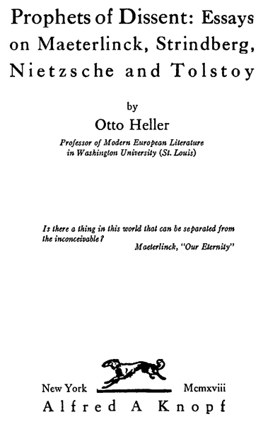 Title: Prophets of Dissent : Essays on Maeterlinck, Strindberg, Nietzsche and Tolstoy