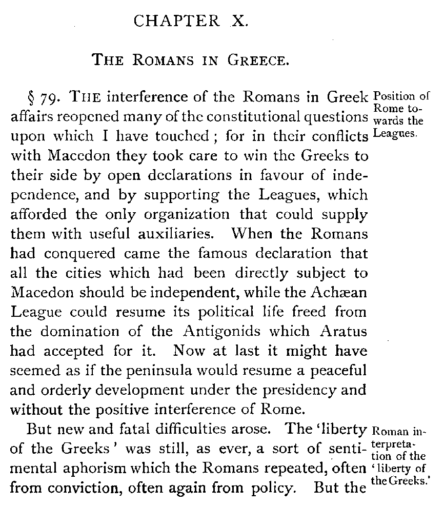 [190:1] I am of course speaking generally, nor do I venture to decide without argument the difficult question of the exact status of Greece in the years after 146 B.C.