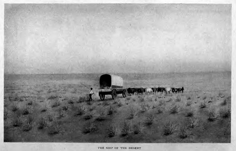 At length the seemingly interminable night ended: “the phantom of false morning,” which so often had mocked us, gave place to dawn—virginal and splendid. Then day came on rapid feet. Just as the sun cleared the rim of the earth the wagon halted, and at once the yokes fell from the necks of the tired oxen. Within a few minutes we lay fast asleep beneath a hastily-constructed sun-screen.