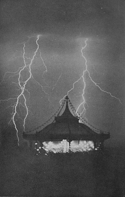 I remember one occasion upon which some of us were boasting of what we had done in the way of alarming men, whereupon one fellow-electron rather belittled our doings. He maintained that he had jumped all the way from a cloud to the earth, along with a crowd of other electrons. In doing so they had scared the inhabitants of a whole village, for they alighted upon the steeple of a church, and in their wild rush they played such havoc among the atoms composing the steeple that they did considerable outward damage to the great structure.