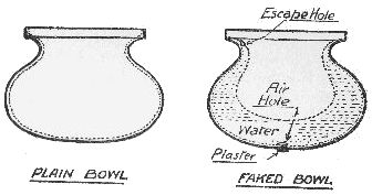 To cause a glass of water to vanish is hardly a complete trick, but it may well form part of many magical experiments. Thus, if you are presenting the "Rice Bowls" (see Chapter V) you can proceed with the trick up to the point when the rice has been secretly removed and the water is in readiness for the final effect. Leave the bowls as they are, one inverted on the other, and show a silk hat to the audience, letting them see inside it.
