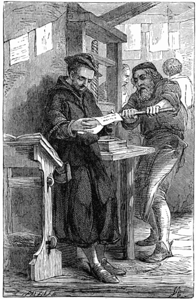 Gutenberg had scarcely completed his printing machine, and got it into working order, when the jealousy and distrust of his associates in the nominal business he carried on, brought him into trouble with the authorities of Strasburg. He could have saved himself by the disclosure of all the secrets of his invention; but this he refused to do. His goods were confiscated; and he returned penniless, with a heavy heart, to his native town Mentz. There, in partnership with a wealthy goldsmith named John Fust, and his son-in-law Schoeffer, he started a printing office; from which he sent out many works, mostly of a religious character. The enterprise throve; but misfortune was ever dogging Gutenberg's steps, and he had but a brief taste of prosperity. The priests looked with suspicion upon the new art, which enabled people to read for themselves what before they had to take on trust from them. The transcribers of books,—a large and influential [Pg 25] guild,—were also hostile to the invention, which threatened to deprive them of their livelihood. These two bodies formed a league against the printers; and upon the head of poor Gutenberg were emptied all the vials of their wrath. Fust and Schoeffer, with crafty adroitness, managed to conciliate their opponents, and to offer up their partner as a sacrifice for themselves. By the zeal of his enemies, and the treachery of his friends, Gutenberg was driven out of Mentz. After wandering about for some time in poverty and neglect, Adolphus, the Elector of Nassau, became his patron; and at his court Gutenberg set up a press, and printed a number of works with his own hands. Though poor, his last years were spent in peace; and when he died, he had only a few copies of the productions of his press to leave to his sister.