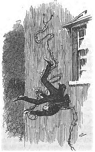 “Now dis foot—now dat,” he hissed through his teeth; and, somehow, I don’t know in what way, he guided me down the ladder, to which I clung tightly, wet as it was; and, as lights and faces appeared at the open window, Achille dragged the ladder down, and we were in full flight across the lawn; where he supported me with one hand, and trailed the ladder after us with the other.
