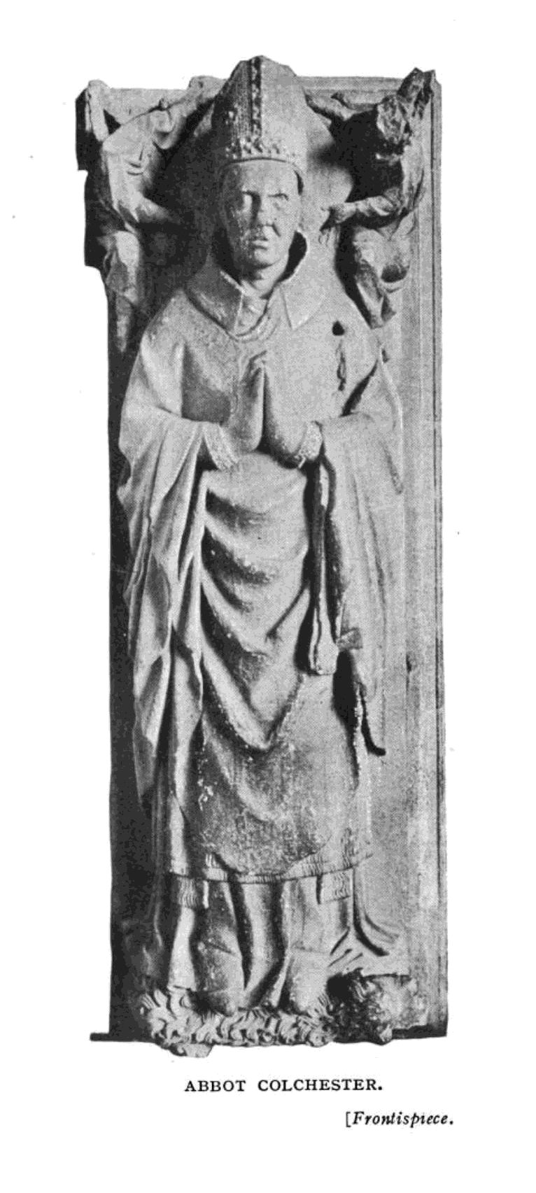 The third means adopted by the Convent for marking its sense of Colchester's services to the House was more exceptional. I give the statement [47] of it as it stands in the vellum volume called Liber Niger Quaternus, a fifteenth-century copy of an earlier black paper register compiled by a very active monk called Roger Kyrton, or Cretton, 45 who entered the Convent in 1384-5, served many offices under Abbot Colchester, and survived him by about fourteen years:—