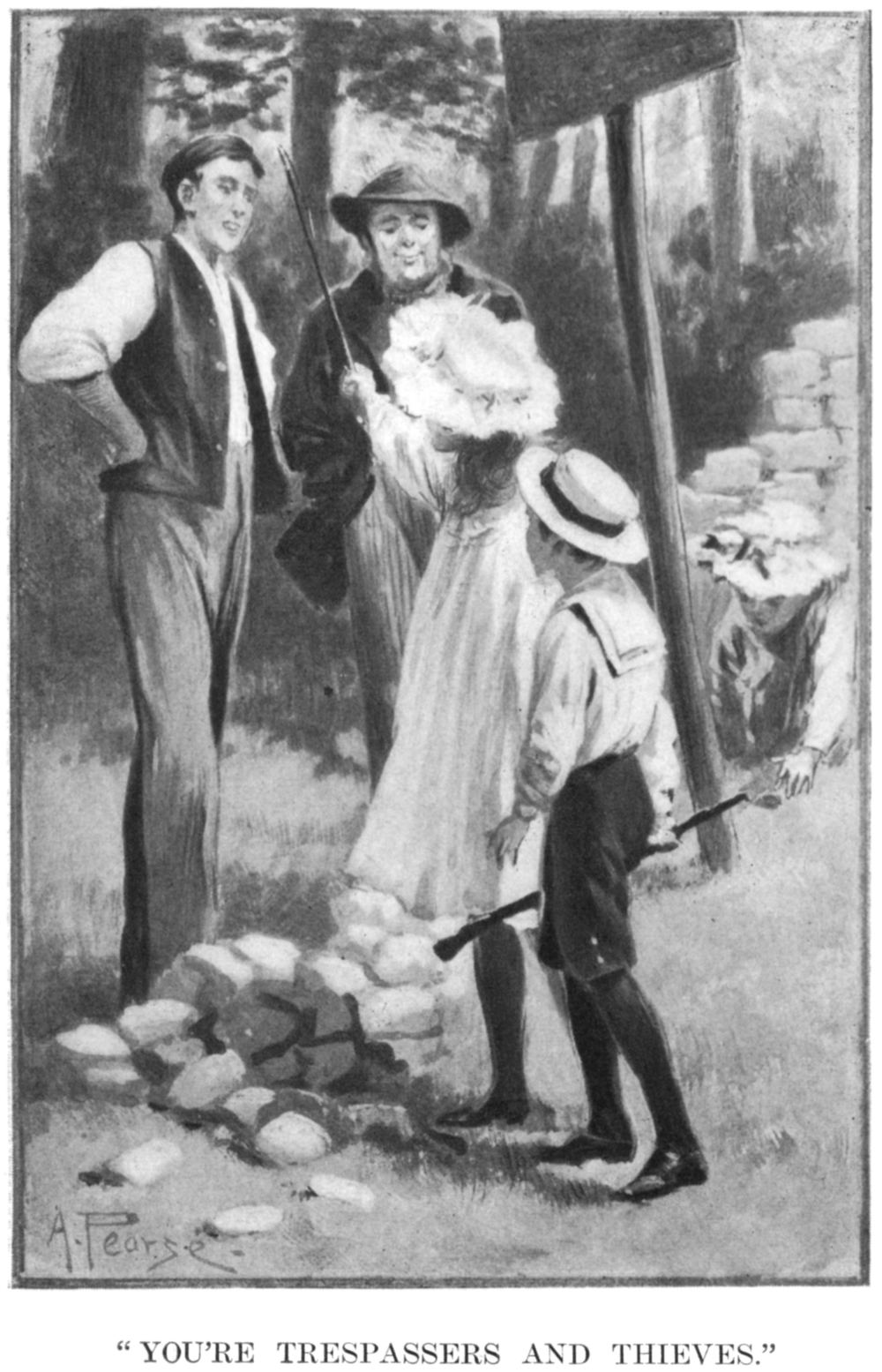 "Yes," said Jill, stopping in her feat of brushing dead leaves away; "you and Mona aren't trespassers, for you belong to our Tenth Society, and you don't laugh at our 'Bethel.'"
