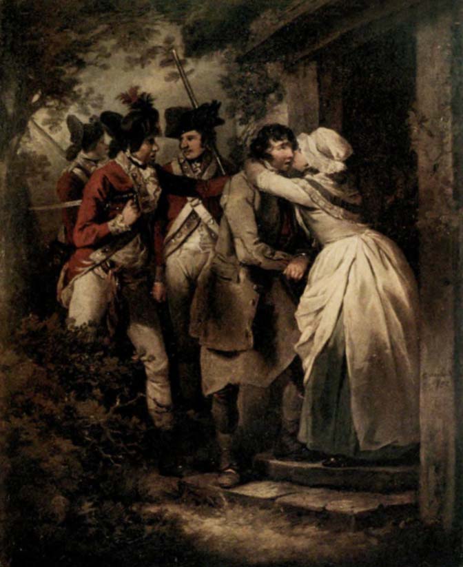 After his return to London in 1786, he lived sometimes with his parents, and sometimes elsewhere. Among his acquaintances he numbered William Ward, the famous engraver, who had, ere this time, reproduced at least one of Morland's pictures. He became a frequent visitor at Ward's house at Kensal Green, and before long took up his quarters with the family, consisting of the engraver, his mother, and two sisters. Anne Ward, a very beautiful girl, soon captivated Morland, and they were married at St. Paul's, Hammersmith, on September 22, 1786.