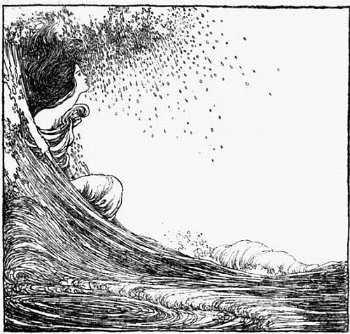 Our loins are battered ’neath us by the swinging, smoking seas.
