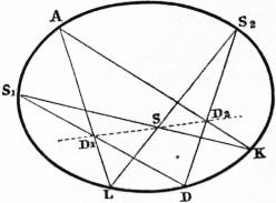 The second stream of thought confined itself within the circle of ideas of Euclidean geometry. Its origin was mainly due to a 736 succession of great French mathematicians, for example, G. Monge, Géométrie descriptive (1800); J.V. Poncelet, Traité des proprietés projectives des figures (1822); M. Chasles, Aperçu historique sur l’origine et le développement des méthodes en géométrie (Bruxelles, 1837), and Traité de géométrie supérieure (Paris, 1852); and many others. But the works which have been, and are still, of decisive influence on thought as a store-house of ideas relevant to the foundations of geometry are K.G.C. von Staudt’s two works, Geometrie der Lage (Nürnberg, 1847); and Beiträge zur Geometrie der Lage (Nürnberg, 1856, 3rd ed. 1860).
