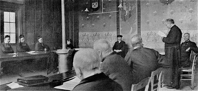 Le tribunal. Le greffier. Abbé Baron. Chanoine Delassus.