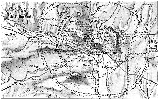 l'armée de siège bulgare, sur la rive de la Maritza, avec son