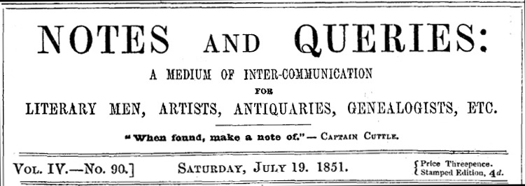 Title: Notes and Queries, Vol. IV, Number 90, July 19, 1851