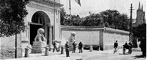 Après de nombreux détours dans la vallée, nous apercevons la maison d'arrêt. On dirait un vaste château fort gardé par une série de kiosques surélevés, dans lesquels sont placés des gardiens prêts à fusiller les fugitifs. Dès que l'on pénètre sur les terrains du pénitencier, cette impression sévère s'adoucit, car le château fort est entouré de paisibles jardins potagers, de tennis-courts, de parterres multicolores et de vertes pelouses. Les premiers prisonniers que nous rencontrons, rasés de frais, décemment habillés dans leur uniforme de laine blanche à larges raies noires, ont un air de prospérité qui empêche qu'on ne s'apitoie par trop sur leur sort.