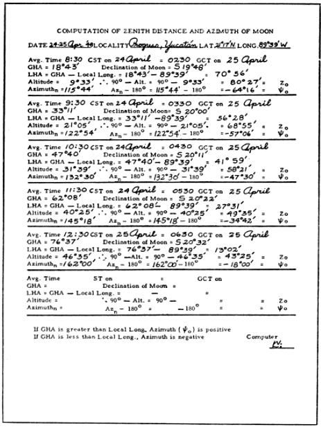 Most of the stations were in operation for several nights in the full moon periods of March, April, and May, keeping the moon under constant watch from twilight to dawn when conditions permitted. They have provided counts representing more than one thousand [Pg_367] hours of observation, at many places in an area of more than a million square miles. But, as impressive as the figures on the record sheets are, they, like the published observations referred to above, have dubious meaning as they stand. Were we to compare them directly, station for station, or hour for hour, we would be almost certain to fall into serious errors. The reasons for this are not simple, and the measures that must be taken to obtain true comparisons are even less so. When I first presented this problem to my colleague, Professor William A. Rense, of the Department of Physics and Astronomy at Louisiana State University, I was told that mathematical means exist for reducing the data and for ascertaining the desired facts. Rense's scholarly insight into the mathematics of the problem resulted in his derivation of formulae that have enabled me to analyze on a comparable basis data obtained from different stations on the same night, and from the same station at different hours and on different nights. Astronomical and technical aspects of the problem are covered by Rense in his paper (1946), but the underlying principles are discussed at somewhat greater length in this paper.