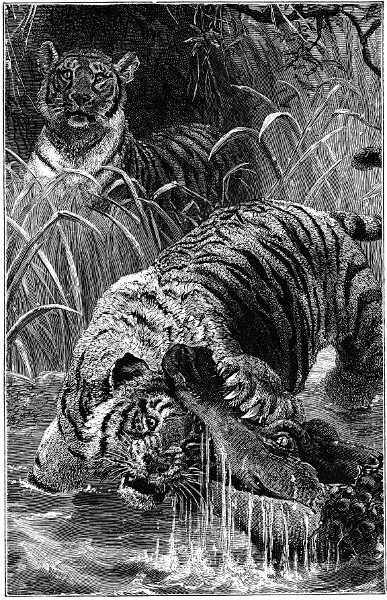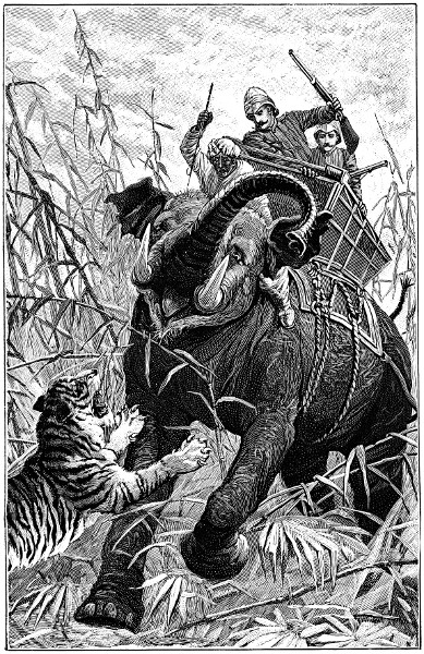 "Every beast of the field seemed leagued against this devoted patch of sugar-cane. The wild elephants came and browzed in it; the jungle hogs rooted it up, and munched it at their leisure; the jackals gnawed the stalks into squash; and the wild deer ate the tops of the young plants. Against all these marauders there was an obvious remedy,—to build a stout fence round the cane-field. This was done accordingly; and a deep trench dug outside, that even the wild elephant did not deem it prudent to cross. The wild hogs[Pg 28] came and inspected the trench and the palisades beyond. A bristly old tusker was observed taking a survey of the defences; but, after mature deliberation, he gave two short grunts, the porcine (language), I imagined, for 'No go,' and took himself off at a round trot, to pay a visit to my neighbour Ram Chunder, and inquire how his little plot of sweet yams was coming on. The jackals sniffed at every crevice, and determined to wait a bit; but the monkeys laughed the whole entrenchment to scorn. Day after day was I doomed to behold my canes devoured as fast as they ripened, by troops of jubilant monkeys. It was of no use attempting to drive them away. When disturbed, they merely retreated to the nearest tree, dragging whole stalks of sugar-cane along with them, and then spurted the chewed fragments in my face, as I looked up at them. This was adding insult to injury; and I positively began to grow bloodthirsty at the idea of being outwitted by monkeys. The case between us might have been stated in this way. 'I have, at much trouble and expense, cleared and cultivated this jungle land,' said I. 'More fool you,' said the monkeys. 'I have planted and watched over these sugar-canes.' 'Watched! Ah, ah! so have we, for the matter of that.' 'But surely I have a right to reap what I sowed.' 'Don't see it,' said the monkeys; 'the jungle, by rights prescriptive and indefeasible, is ours, and has been so ever since the days of Ram Hanumán of the long tail. If you cultivate the jungle without our consent, you must look to the consequences. If you don't like our customs, you may get about your business. We don't want you.' I kept brooding over this mortifying view of the matter, until one morning I hatched revenge in a practicable shape. A tree, with about a score of monkeys on it, was cut down, and half a dozen of the youngest were caught as they attempted to escape. A large pot of ghow (treacle) was then mixed with as much tarter emetic as could be spared from the medicine chest, and the young hopefuls,[Pg 29] after being carefully painted over with the compound, were allowed to return to their distressed relatives, who, as soon as they arrived, gathered round them and commenced licking them with the greatest assiduity. The results I had anticipated were not long in making their appearance. A more melancholy sight it was impossible to behold; but so efficacious was this treatment, that for more than two years I hardly ever saw a monkey in the neighbourhood."