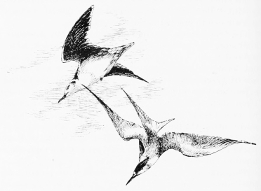 [20] Kittiwakes and Black-headed Gulls in swarms during March and early April, whitening acres of water. The latter remained till perfect summer-plumage is attained (by March 21st). Little Gulls frequent: on two occasions (in February and March) observed in scores. Larus fuscus and L. argentatus were common in March, and on April 5th we obtained an adult of L. marinus in the marisma. Of British Terns, S. cantiaca and S. fluviatilis, were noticed in early spring.