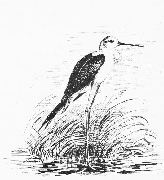 [21] When first hatched, the legs of the young Stilts are quite short; but by mid-June are of medium length, pale clay-colour, and curiously swollen about the knee-joint. The upper plumage of the young at that date is mottled brown, irides brown. By the following January these young Stilts have acquired a black and white plumage; but the irides remain dark, and the legs a pale pink. The adults vary in the disposition of black and white in their plumage, especially on head and neck, and some few have the breast prettily tinged with roseate.