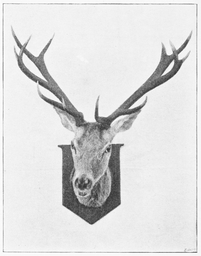 [78] These old and cunning stags do not always break covert so readily, as the following incident will show. We had tracked a hart for some miles, till eventually the trail led towards quite a small clump—not two acres—of 20-ft. gorse and tree-heath with an outer fringe of bamboo, all growing on dry ground, though entirely surrounded by flood-water. Every indication pointed to the stag having couched in this congenial covert; the hunters, however, traversed it without moving game. The water-weeds outside showed no sign of the stag having passed onward: but, to make sure, we took a wide cast on the drier ground beyond, separating so as completely to encircle the mancha. No vestige of a trail could be seen; clearly the beast still lay in the recesses of his island-sanctuary. The gun once more took up his position to leeward, and the covert was beaten again—this time more effectively, for presently, amid crash of branches and bamboos, the stag, which had been lying like a hare in its form, bounded out across the shallow marsh—with the usual result!
