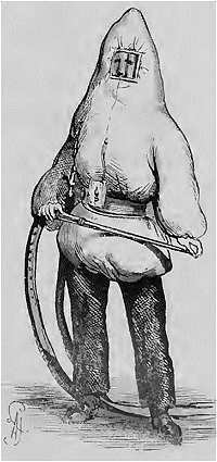 Un moine, entre autres, dépassant ses camarades de toute la tête, semblait y mettre plus d'ardeur qu'eux tous, et dans son enthousiasme, son capuchon rabattu laisse de temps à autre pointer deux grandes moustaches d'un rouge vif, mais que la hauteur rend invisibles.