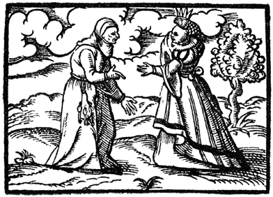Da sprach die Amme zu dem Ritter: „Ich will's ihr sagen, wie ihr mich berichtet; will auch verhelfen, damit ihr mit ihr zu reden kommet.“