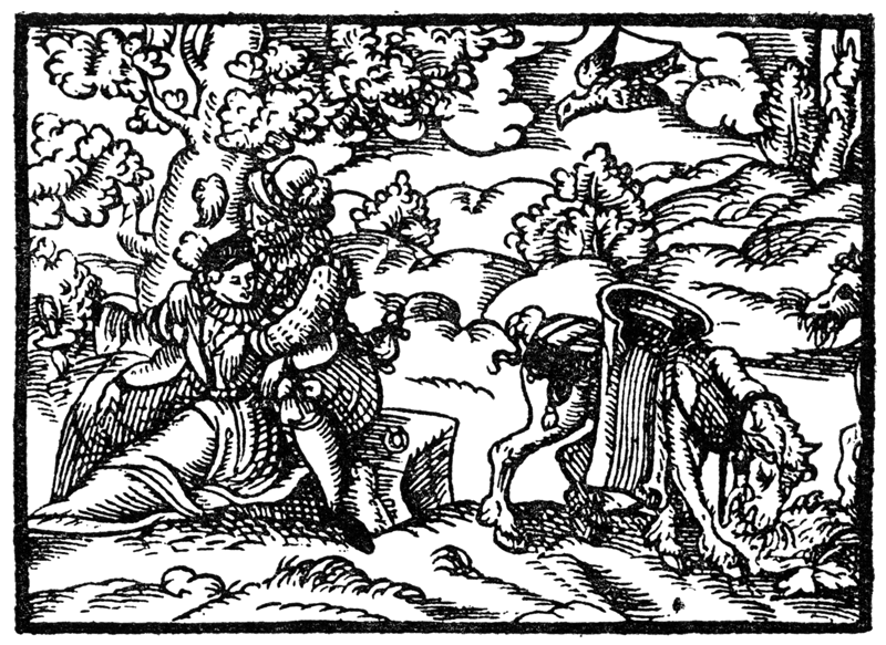 Da sprach der Ritter zu ihr: „Liebe Frau, ich müßt eines bösen Todes sterben, so ich je an eine solche Lieb oder Schande gedacht habe; sondern an eine ehrliche züchtige und treuliche Liebe, darinne ich ihr gerne wollte dienen.“