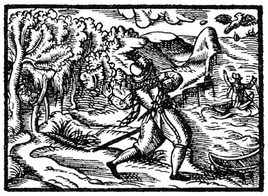 Und es begab sich eines Tags, da kam einer zu dem Peter und saget ihm also: „Ihr sollet wandern und die Welt suchen und euch üben in Ritterspielen, damit ihr weiter erkannt würdet. So ihr mir des folget, werdet ihr ohn Zweifel einen 5schönen Buhlen überkommen.“ Da solches der Peter vernahm, und hätt die Weil vor auch von der Schönen Magelona gehöret, setzt er sich selber für in seinem edeln Herzen, so er möchte Urlaub haben von Vater und Mutter, zu folgen und die Welt zu erfahren.