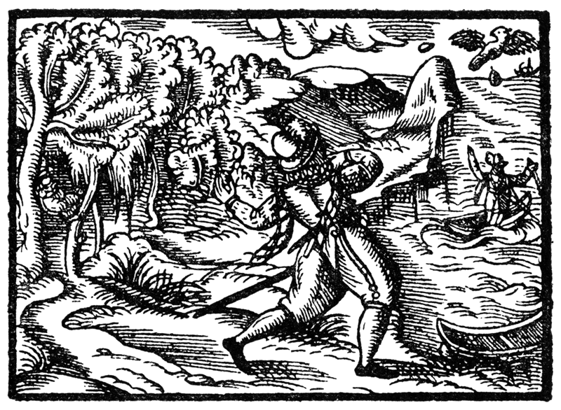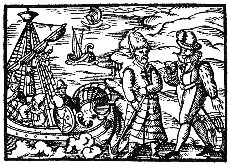 Eines Tags begab es sich, daß er spazieren ging an das Meer, 85wie er gewohnet war, und sah ein Schiff am Port, zu dem ging er. Da höret er die Schiffleut die Sprach seines Vaterlands reden. Da fraget er sie, wann sie heim wieder wollten fahren. Sagten sie ihm, auf das Längste in zweien Tagen. Da kam der Peter zu dem Patron und bat ihn um GOTTes willen, er wölle ihn mit ihm führen; er wäre auch aus dem Lande und wäre lange Zeit krank gelegen. Antwortet ihm der Patron, er wäre es willig zu tun um GOTTes willen, dieweil er ein Landsmann wäre, jedoch müßte er mit ihm fahren gen Toten-Wasser in der Inseln, genannt der Heiden Port. Da war er wohl zufrieden, und stieg also zu Schiffe.