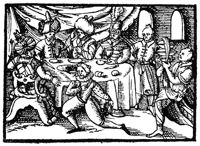Und begab sich eins mals, daß der Sultan ein groß Feste hielt; und war fröhlich und gab vielen Menschen große Gaben. Da ersah der Peter die Zeit, und fiel für ihm auf seine Knie und sprach also: „Herr, ich bin lange Zeit gewesen an euerm Hofe, und durch euer sonderliche Gnade bin ich in viel Sachen, so ich euch für getragen, von euch erhört worden. Hab auch viel anderen Leuten ihre Sachen aus gerichtet, aber mir meiner halben zu geben, habe ich euch noch nie gebeten. Darum ich auf dies mal euer Gnaden bitten wollte, mir etwas zu geben, so ich nun begehren werde, und mir solches nicht ab zu schlagen.“