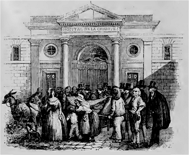 On ne recevait autrefois à l'hôpital de la Charité que des hommes attaqués de maladies curables, et encore fallait-il que ces maladies ne fussent point contagieuses ni honteuses. On s'accordait généralement à louer les soins, la propreté, la bonté, la charité véritable, avec lesquels les malades étaient traités. Parmi les garçons chirurgiens attachés à rétablissement, il y en avait un à qui six ans de service conféraient de droit la maîtrise. La Charité s'appelait, pendant la Révolution, hospice de l'Unité: Ce n'est qu'en 1818 qu'elle a repris son premier, son véritable nom.