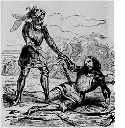 Buonvicino était dans cet âge où le coeur est tout sentiment, sans arrière-pensée ni calcul: plein des idées du patriotisme antique, inspiré par les préjugés nouveaux qui donnaient le nom d'étranger à l'habitant de la cité voisine et appelaient tyrannie la domination du pays limitrophe, lorsqu'il eut vent du complot, il rassembla un bon nombre de ses condisciples, et arriva assez à temps à Plaisance pour que sa valeur y fût utile aux conjurés, et pour y déployer sa générosité naturelle. Le jour où éclata la révolte, Béatrice, femme du seigneur Galéas, était dans la ville avec son jeune fils Azone. Uniquement occupée du salut de son enfant, la mère trouva moyen de le faire évader. Quant à elle, elle demeura dans le palais pour ne pas éveiller les soupçons, résolue à braver la colère et la brutalité d'un peuple en délire, pourvu que son fils fût sauvé. Ce dénouement fut connu de Buonvicino; plein de respect et de vénération pour cette sainte tendresse d'une mère, non-seulement il empêcha qu'aucun outrage fut fait à Béatrice, mais il la conduisit lui-même hors du territoire de Plaisance, et la remit saine et sauve aux gardes de Galéas.