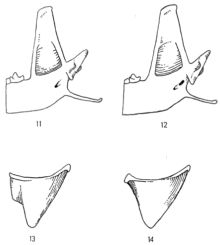 Variation with age must be considered in order to assemble comparable samples of these shrews. Increased age results in wear on all teeth and in particularly striking changes in the size and shape of the first incisors. Skulls of older shrews develop sagittal and lambdoidal ridges, and further differ from skulls of young animals in being slightly broader and shorter, and in developing thicker bone, particularly on the rostrum which thus seems to be, but is not always in fact, more robust. Pruitt has recently (1954) noted these same cranial differences in specimens of Sorex cinereus of different ages.