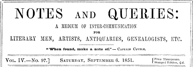 Title: Notes and Queries, Vol. IV, Number 97, September 6, 1851