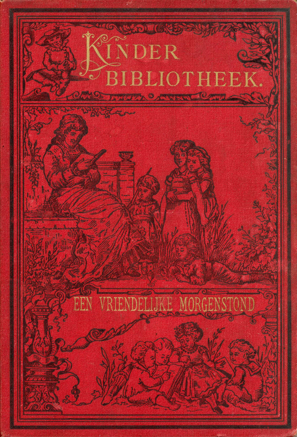 De kamerdeur werd geopend en een paar kinderen traden binnen; een jongen van acht en een meisje van zeven jaren. De eerste had een blad in de handen, waarop een koffiekannetje, suikerpot en kopje stonden. Het schenkblad was met bloemen versierd. Het meisje torschte twee potten met bloemen: een Basilicum en een roode Balsemine.