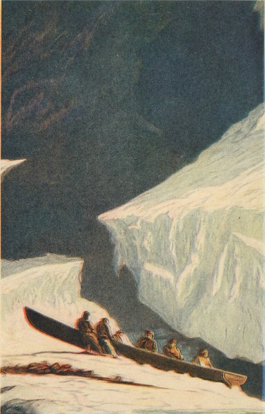 Long and bitter was the conflict in Mertuk's heart between her motherly affection and her wifely devotion. Should she do alone her duty to her infant, or should she put the child's life aside in her arctic quest for her missing hunter husband? To the last her heart was undecided. Now she turned to the north, taking a few steps toward the ship, then she flew back on the trail after the searching party, which had now moved onward.