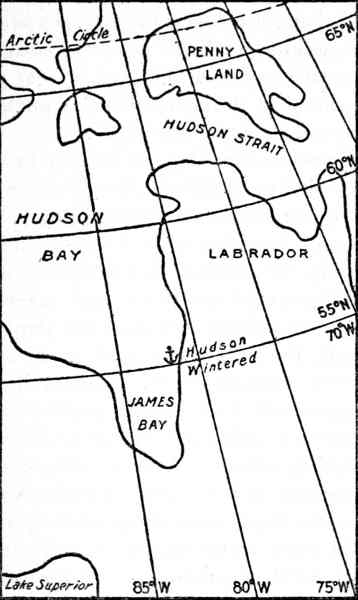 Hudson unwisely decided to remain in the bay through the winter and put the Discovery into quarters in James Bay, an unfortunate though possibly inevitable anchorage. Knowing as we do the terrible cold of the winters in the Hudson Bay region, it is certain that the illy provided crew must have suffered excessively during the winter. Besides, the ship was provisioned only for six months and must be absent nearly a year. Sensible of the situation, Hudson encouraged systematic hunting and promised a reward for every one who "killed either beast, or fish, or fowl." The surrounding forests and barren hills were scoured for reindeer-moss or any other vegetable matter that could be eaten, while the activity of the hunters was such that in three winter months they obtained more than twelve hundred ptarmigan. Nevertheless, they were in straits for food despite efforts at sea and on land.