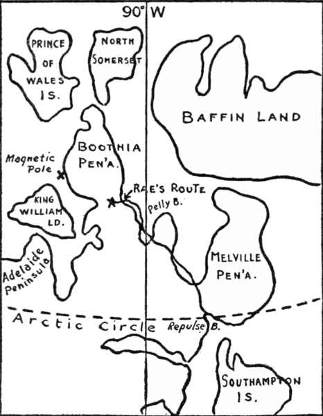 [3] The primary importance of concerted and co-operative action in explorations covering such a broad field was strikingly illustrated by the situation at this time. While Franklin and his men were facing disaster and death in their ice-bound ships to the west of Boothia Felix Land, that distinguished arctic traveller, John Rae, was exploring Boothia Peninsula. On April 18, 1847, he was less than one hundred and fifty miles from his sorely distressed countrymen.