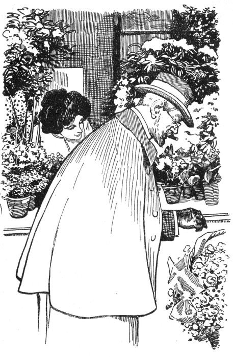 Onkel Heinz ging aber nicht nach Hause, denn als er die Uhr herauszog, bemerkte er, daß bis zum Anfange des Konzerts nur noch wenig Zeit übrig war, und er überlegte sich deshalb, daß es sich gar nicht lohnen würde, vorher noch seine Wohnung aufzusuchen. Und da fiel ihm dann auch ein, daß es wohl besser wäre, wenn er noch mal bei dem Blumenladen vorginge, wo er für Ruth den Blumenkorb bestellt hatte, und nachfrüge, ob alles in Ordnung sei. Die Verkäuferin hatte sich schon am Morgen über den „wunderlichen alten Herrn“ amüsiert, der in umständlichster Weise seine Bestellung gemacht und ganz genau angegeben hatte, in welcher Art die Blumen geordnet werden sollten. Alle Vorschläge, die sie machte, wurden von ihm verworfen und geschmacklos gefunden; er suchte selbst die Blumen aus und gab an, so und so sollte die Farbenzusammenstellung sein und nicht ein Tüpfelchen anders. Am Mittag war er wieder gekommen, hatte sich den [pg 219]fertigen Korb angesehen, und ein Etui hineingesteckt, das eine kleine Brosche ganz aus Türkisen und Brillanten enthielt, welche er seiner Kröte zum heutigen wichtigen Tage schenken wollte. Aber trotzdem das Blumenarrangement ganz genau nach seiner Angabe gemacht worden war, hatte er doch daran zu mäkeln und zog hier noch eine Blüte, dort noch ein Blatt heraus, die nach seiner Meinung in die Farbenharmonie nicht paßten. Wer wohl diese Gabe, die dem alten Herrn soviel Kopfzerbrechen machte, bekam? Das hätte das junge Mädchen in dem Laden gar zu gern gewußt, denn eine Frau besaß er nicht, das hatte ihr kundiger Blick gleich erkannt, na, und für einen Bräutigam war er doch zu alt. Als der Professor jetzt wieder erschien – zum dritten Male an diesem Tage – da mußte sie unwillkürlich lachen; sie gab ihm aber auf seine bis ins kleinste gehenden Fragen, ob die Bestellung auch richtig und pünktlich besorgt sei, geduldig Antwort. In ihrem Innern meinte sie jedoch, daß so komisch, wie dieser Herr, ihr noch selten jemand vorgekommen wäre, trotzdem sie mit allen möglichen Menschen verkehren mußte.