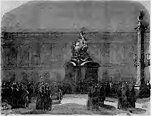 L'Illustration a saisi le moment où va être donné le signal du départ pour le grand prix royal. Tout le monde est à son poste; on aperçoit la tribune du jockey-club, les juges et les coureurs. Jenny est confondue dans la foule, mais bientôt elle en sortira: elle sera victorieuse.
