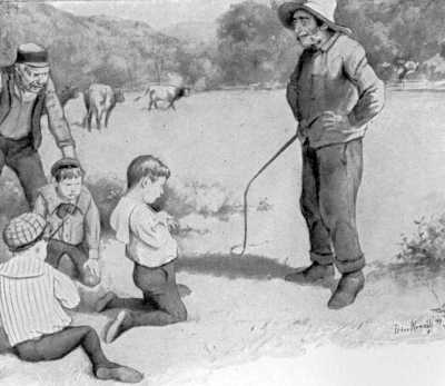 There was a commotion among the gooseberry-bushes, two branches were swept aside, and Johnnie Hedge walked down upon them. Every boy stopped in his tracks. Johnnie was boiling with rage.