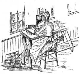Ascending to the fourth floor, the noisy sound of machinery is first heard. This is the department for sewing straw braid; here unquestionably centres the interest in a hat factory; the hum of a hundred machines quickens the pulse, and to the observer, the interest and astonishment increases as the wonderful machine with its lightning speed, guided by the magic touch of the young woman who rules it, draws towards itself yard after yard of the delicate strand of straw plait which it sews together by the finest stitch of the most slender thread, till suddenly a hat comes forth, complete in its full perfection of shape. One's surprise would not be more greatly heightened by a display of the magician's art. The marvel of this accomplishment may be effectively demonstrated by a simple statement. That bit of mechanism occupying a space of 10 x 12 inches, with its135 apparently simple arrangement of levers and cogs, merely carrying a needle to and fro, up and down, will do in a single minute the work an industrious woman with her unaided fingers could not do in less than an hour. That little machine is capable of doing within the working hours of a day the labor of sixty women; while a hundred machines in a factory are capable of producing the handwork of six thousand people; this shows the progress of136 the world, and the advance that has come to this branch of industry within the last thirty years.