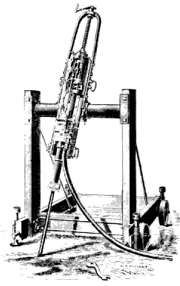The merely routine criticism of the project had by this time become violent due to the inordinate length of time already elapsed and the immense cost, compared to the small portion of work completed. This served to generate in the commission a strong sense of urgency to hurry the project along. Charles S. Storrow, a competent engineer, was sent to Europe to report on the progress of tunneling there, and in particular on mechanization at the Mont Cenis Tunnel then under construction between France and Italy. Germain Sommeiller, its chief engineer, had, after experimentation similar to Haupt’s, invented a reasonably efficient drilling machine which had gone into service at Mont Cenis in March 1861. It was a distinct improvement over hand drilling, almost doubling the drilling rate, but was complex and highly unreliable. Two hundred drills were required to keep 16 drills at work. But the vital point in this was the fact that Sommeiller drove his drills not with steam, but air, compressed at the tunnel portals and piped to the work face. It was this single factor, one of application rather than invention, that made the mechanical drill feasible for tunneling.