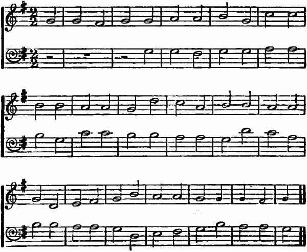 The earliest specimens go to confirm this, for whereas some of them are extremely bucolic and uncouth, others are refined and even sensuous[Pg 12] in character. Alternating in grave and gay, the music suggests diverse origin. Musical notation, as we know it to-day, is a comparatively modern invention. It is the result of centuries of research and experiment. It is doubtful if the music that Gurth, the swineherd of Cedric the Saxon, may have hummed to himself in his long and solitary vigils could indeed be expressed in it. The scales then in popular use were different in essential respects from ours, and that there are even yet vestiges of the old peasant music still remaining I feel persuaded. For instance, many years ago in an outlying district of Sussex I heard an old man singing a folk song to a roomful of approving companions.