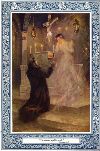 The moon climbed higher and the woman by the mere spread her cloak upon a patch of heather and laid herself thereon. Not a sound broke the silence; the woods were mute, the air lifeless as the steely water. An hour passed. The figure on the heather lay still as an effigy on a tomb. The man in the bracken cast one look at the stars, then crossed himself and crept out into the moonlight.