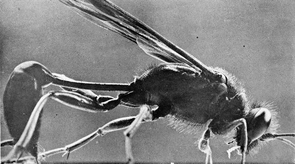 Also, they are our friends if, like the spiders, they kill such monsters as suck our blood or make our lives unsafe, or, like the great hordes of wasps and hornets, wage unending warfare against the flies but which, because they attack us personally if we come too near their nests, we kill on sight. Strangely enough, it is often these same stinging insects which help us by fertilizing the blossoms of our fruit trees. Indeed many plants are so dependent on these little creatures that they have lost the power of self-fertilizing and thousands of species of trees and plants would become extinct in a generation without their friendly aid.