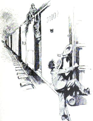 I wonder whether there are still men in Hoboland who remember that interesting little fellow called "the Cheyenne Baby"? Surely there are some who have not forgotten his grotesque vocabulary, and his utterly overpowering way of using it. There are different stories concerning his origin, and they vary in truthfulness, I have heard, as one travels southward from the Northern Pacific to Santa Fé. I give the one told in Colorado. It may be only a "ghost-story," and it may be true; all that I know is that it is not impossible. According to its teaching, his mother was once respectable and belonged to the politest society in the Indian Territory. When quite a young girl she carelessly fell in love with a handsome Indian chief, and, much to the disgust of her friends, married him and went away into his camp. It must have been a wild life that she led there, for within a year she was separated from him and living with another Indian. It is the same pitiful story for the next five years; she was knocked about from tent to tent and camp to camp. Her enemies[Pg 40] say that she liked that kind of life, but her friends know better, and claim that she was ashamed to go home. However it was, she went over to the cow-boys after a while, and it was then that the baby was born, and she met the man, whoever he was, that introduced her into Hoboland. She appeared one night at a hang-out near Denver, and there was something so peculiarly forlorn about her that the men took pity on her and pressed her to stay. This she did, and for some time traveled with the hoboes throughout the districts lying between Cheyenne and Santa Fé. The boy became a sort of "mascot," and was probably the only child in Hoboland who was ever taught to be really good. The mother had stipulated with the men that they should never teach him anything bad, and the idea struck them as so comical that they fell in with it. Though they swore continually in his presence, they invariably gave him some respectable version of the conversation; and while about the only words he knew were curses, he was made to believe they signified the nicest things in the world. He died just as unknowing as he had lived, but it was a cruel death. He and his mother, together with some companions, were caught one night in a wreck on the Union Pacific, and all that the survivors could find of him to bury was his right arm. But that was bravely honored, and, unless the coyotes have torn down the wooden slab, the grave can still be found on the prairies.