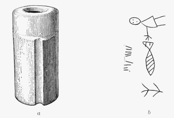 20.0-1467. Awl made of brownish bone nearly circular in section with five incised lines on two sides, four on one, and none on the other which is plain[Pg 171] because worn smooth probably by age or use. From a grave on Blalock Island, a long island in the Columbia River fifteen miles below Umatilla.